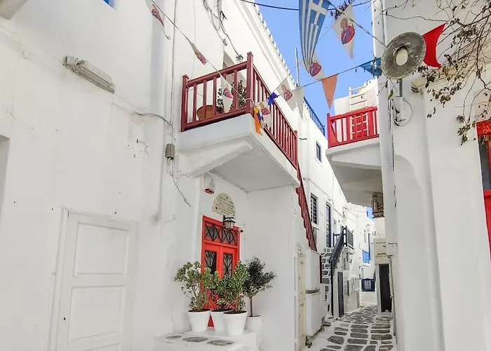 Dojazd na lotnisko Mykonos zajmuje 10 min, a atrakcje przyrodnicze, takie jak Plaża Ftelia, są w 4 km. W odległości 250 metrów stąd leży Dom Leny. Do pobliskich atrakcji turystycznych należą również Mała Wenecja, w zaledwie 350 metrach.